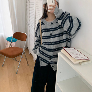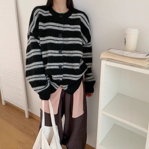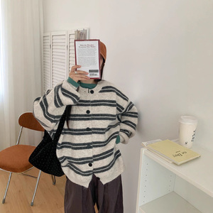 2025秋冬新款 韩版宽松休闲圆领单排扣羊驼毛混纺针织毛衣外套