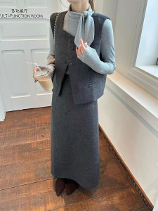 时尚休闲半身裙套装女2025年秋季新款马甲背心长袖针织衫三件套潮