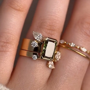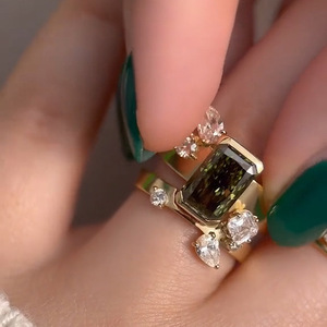 小红书爆款中古橄榄绿方钻戒指冷淡风百搭食指戒叠戴高级一件代发