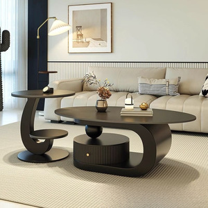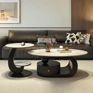 新款椭圆形岩板茶几现代简约客厅家用轻奢高级感小户型茶桌子组合