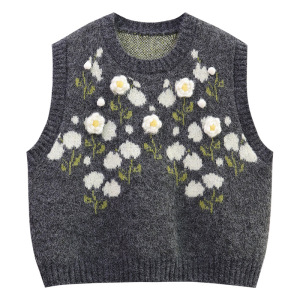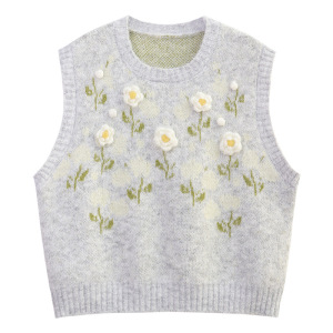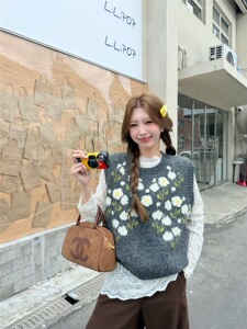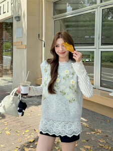 韩系时尚叠穿针织马甲女秋季2025新款花朵少女感休闲甜美短款马夹