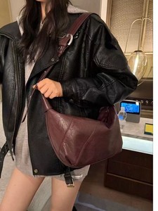 2025新款头层牛皮女包 牛角包单肩 斜挎包包