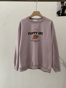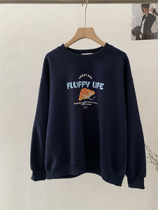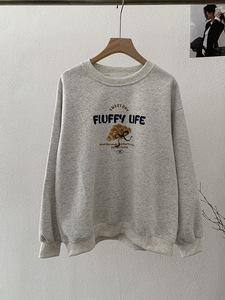 欧玛莱 早秋圆领面包字母印花长袖卫衣宽松套头休闲上衣实拍 4843