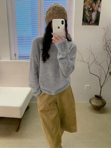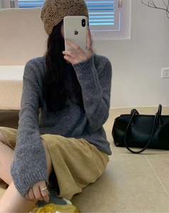 美式复古花纱绿色丝羊绒毛衣秋冬新款韩系慵懒风穿搭羊毛针织衫潮