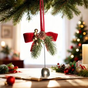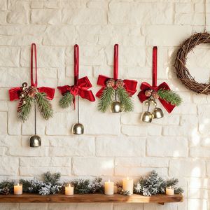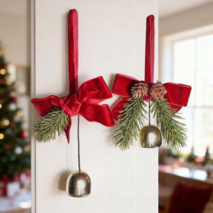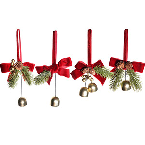 圣诞节植绒蝴蝶结铃铛仿真松果挂件圣诞树场景布置橱窗门挂装饰品