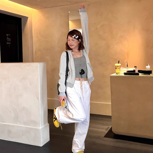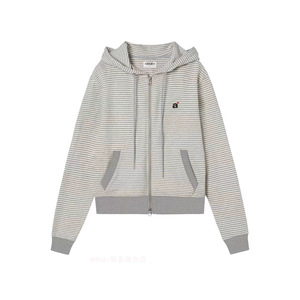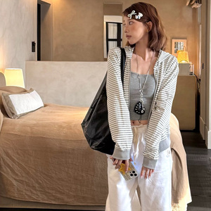 韩国小众ae*条纹刺绣连帽开衫2025秋冬新款显瘦女卫衣长袖帽衫