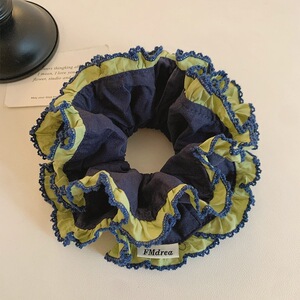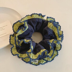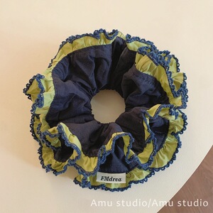 藏青色蕾丝花边双层大肠发圈女韩系扎头发丸子头发绳侧低马尾头绳
