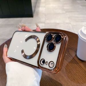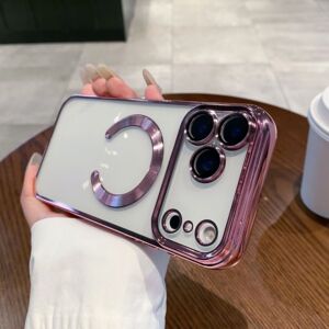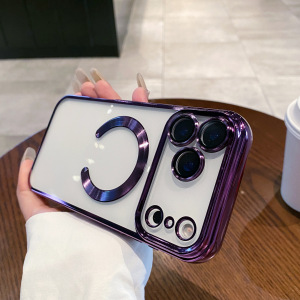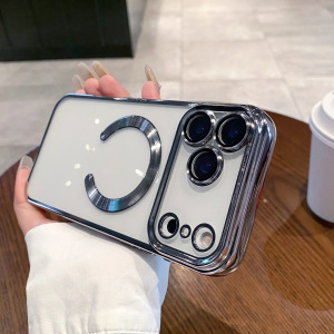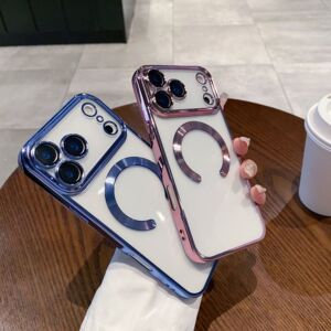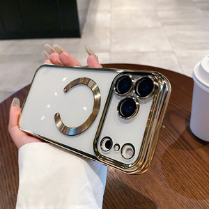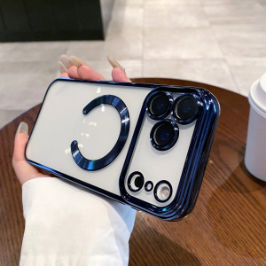适用iPhone17ProMAX手机壳磁吸电镀透明苹果16带镜头膜全包保护套