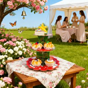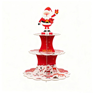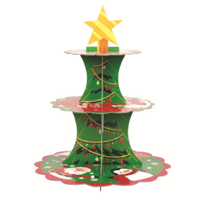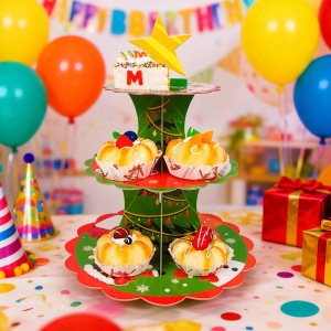 绿色圣诞树多层蛋糕架纸质品高级酒店蛋糕托盘派对圣诞节点心摆台