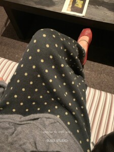 susu波点控复古俏皮秋季针织羊毛宽腰封直筒百搭显瘦中长款半身裙