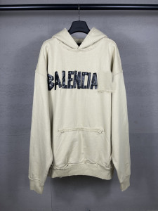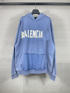 正确版巴家24经典款B家美纹纸胶带拉浆印花洗水做旧磨烂连帽卫衣