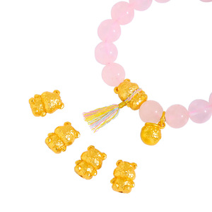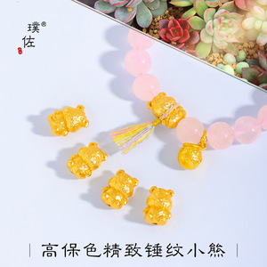 璞佐强保色沙金diy配件锤纹小熊通孔天然粉晶手串可爱卡通串珠女