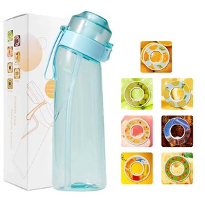 跨境热卖0糖0卡香味杯创意变味水果玩味环运动吸管提手弹跳盖水杯