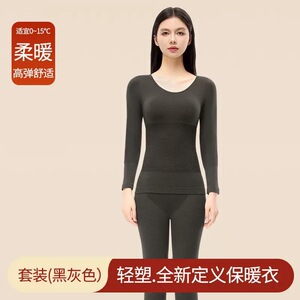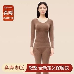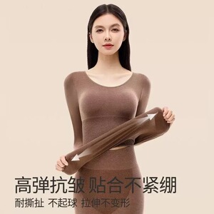 德绒秋衣秋裤套装女士加厚保暖内衣方领无痕蚕丝羊绒发热打底衫冬