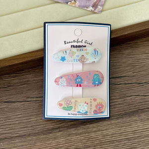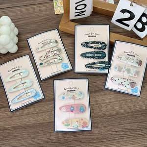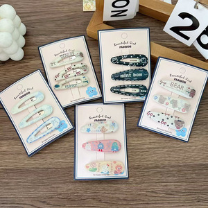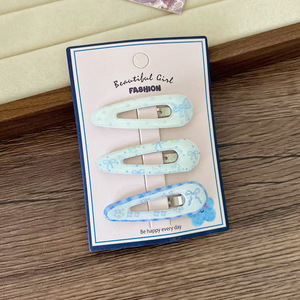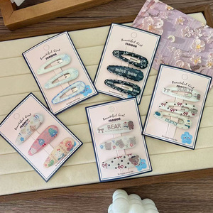 韩国印花套壳水滴bb夹前额无痕刘海夹甜美碎花儿童碎发夹发饰