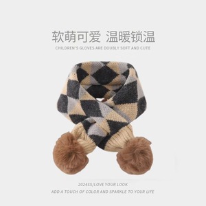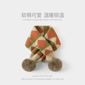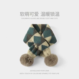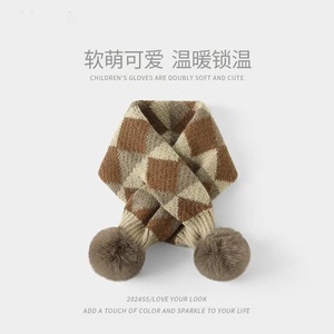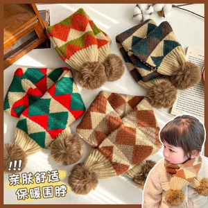 儿童针织交叉围脖中小童男女宝宝英伦格子围巾秋冬保暖舒适围脖套