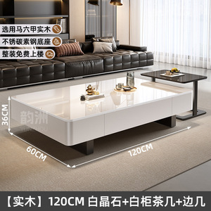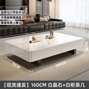 【实木四抽】160白晶石+白柜茶几(整装速发)