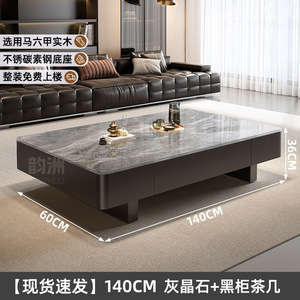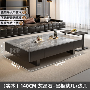 【实木双抽】140灰晶石+黑柜茶几(整装速发)