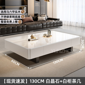 【实木双抽】130白晶石+白柜茶几(整装速发)