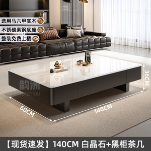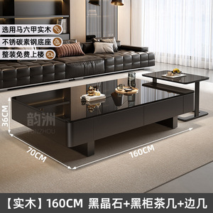 【实木双抽】140白晶石+黑柜茶几(整装速发)