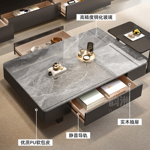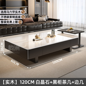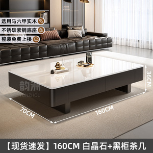【实木四抽】160白晶石+黑柜茶几(整装速发)