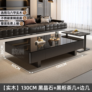 【实木双抽】130黑晶石+黑柜茶几(整装速发)