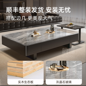 【实木双抽】120灰晶石+黑柜茶几(整装速发)