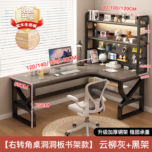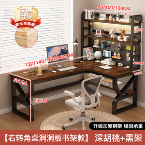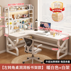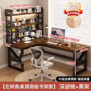 实木转角书桌书一体桌子家用学生学习桌办公桌洞洞板电脑桌台式