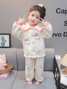 儿童珊瑚绒睡衣女孩秋冬款加厚2025新款宝宝法兰绒套装女童家居服
