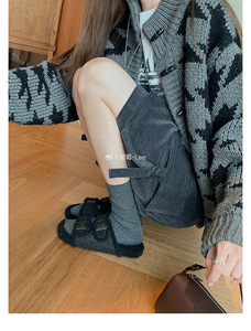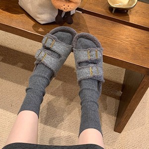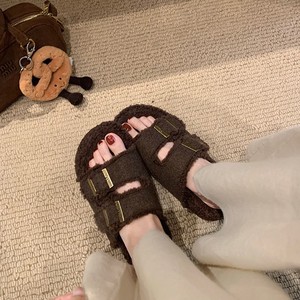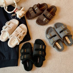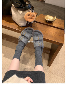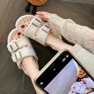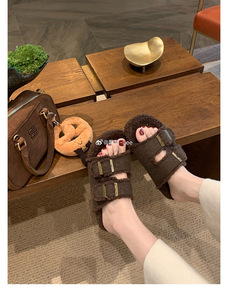 葡萄妈同款现货~ 懒人双扣带外穿百搭厚底毛毛勃肯拖鞋女秋冬外穿