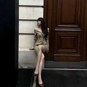 秋季新款气质时髦通勤单排扣收腰显瘦翻领长裤连衣裙女