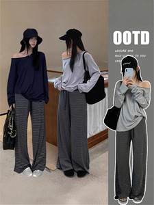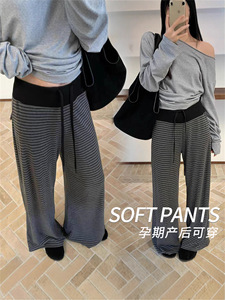 秋冬孕妇条纹裤简约风格微胖穿搭时髦穿搭百搭条纹裤子秋季