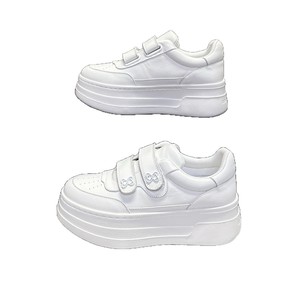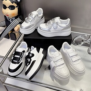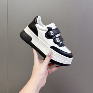 高版新款真皮厚底小白鞋女魔术贴板鞋百搭拼色增高松糕鞋休闲鞋潮