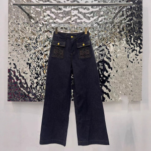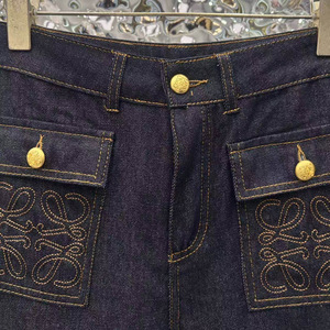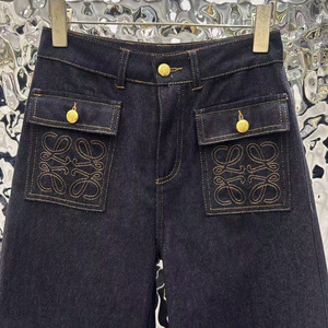 LW25秋冬新款设计感时髦吸睛前口袋刺绣骨位线条牛仔裤