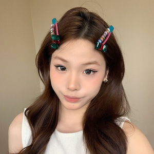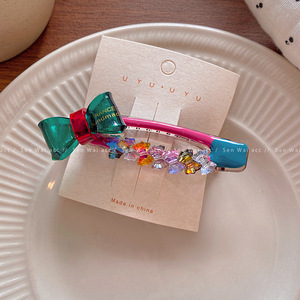 韩系蝴蝶结彩色水钻发夹女高级感2025新款刘海侧边夹鸭嘴夹发饰品