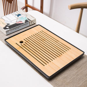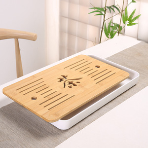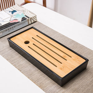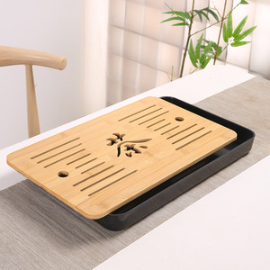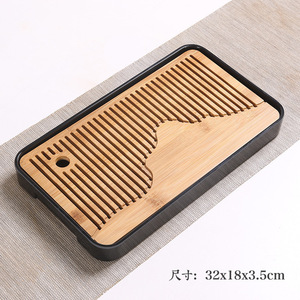 家用简约功夫茶具茶盘套装长方形储水日式密胺竹制小茶台沥水托盘