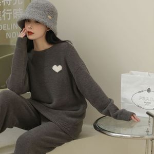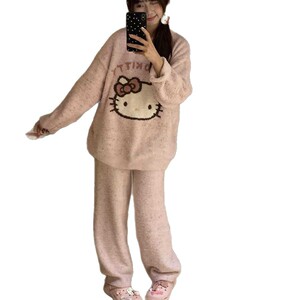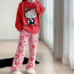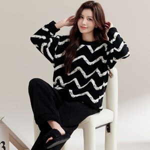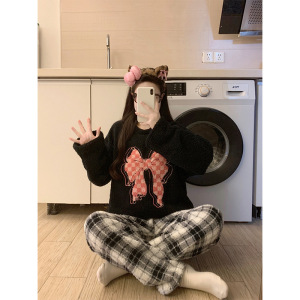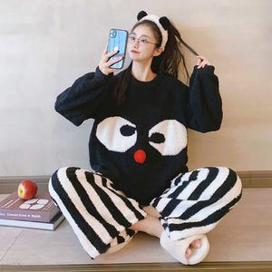 套头睡衣女秋冬季半边绒加厚款新款可爱学生法兰绒家居服套装外穿