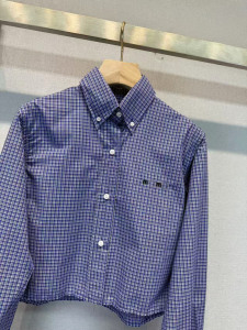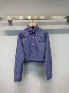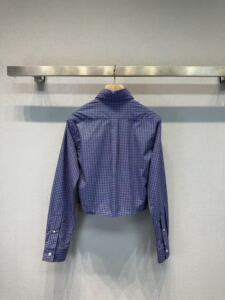 南油女装25春季新款胸前字母微标学院风条纹蓝格子短款衬衫上衣女