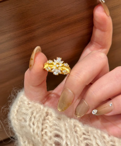 新款蕾丝星辰戒指女闪钻拉丝气质轻奢小众高级感简约百搭设计指环