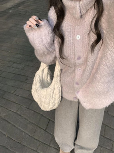 【紫色】【毛衣慵懒高级感/高领毛衣/开春外套/针织开衫外套/奶fufu软糯宽松气质开衫/今年流行的爆