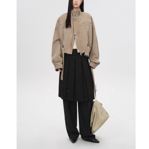 美式复古工装风宽松短款机车夹克外套女2025秋季新款百搭立领上衣