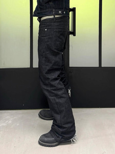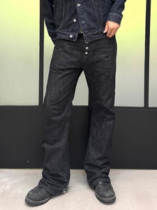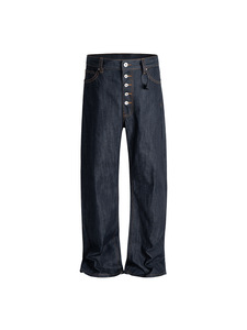 MIJKO男装女明扣BootCut原牛仔裤男女同款直筒纽扣设计阔脚长裤潮