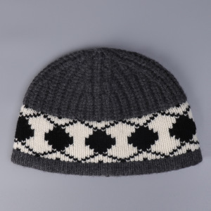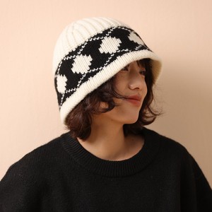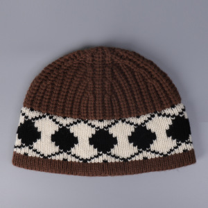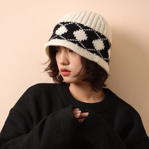 100%羊毛菱格水桶渔夫帽女冬季厚实保暖针织帽护耳显脸小档脸潮帽