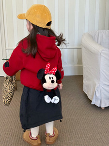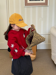 女童加绒加厚卫衣儿童保暖连帽上衣2025秋冬新款女宝红色年款圣诞