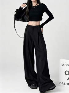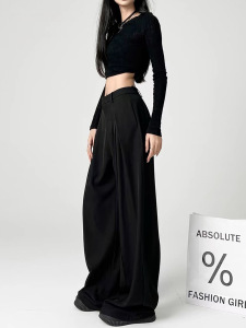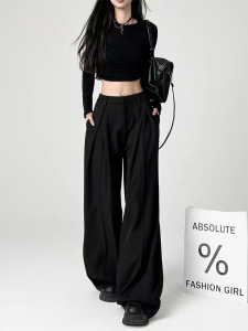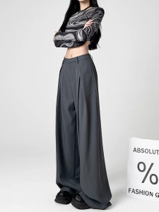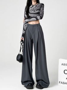 灰色褶皱阔腿西装裤女2025新款设计感慵懒宽松直筒垂感休闲裤子
