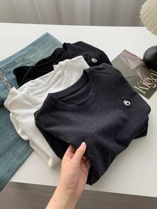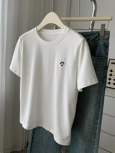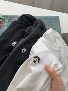 糯叽叽云朵绒小狗刺绣韩版T恤女早秋款磨毛感圆领正肩短袖打底衫
