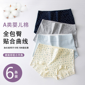 纯棉内裤女生格子薄款加长全棉10A抗菌裆收腹包臀无痕女士平角裤
