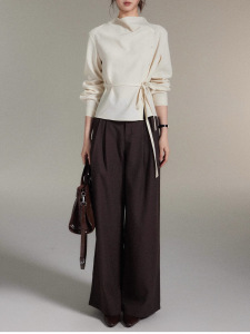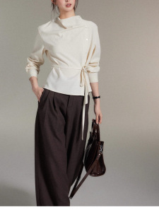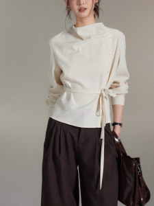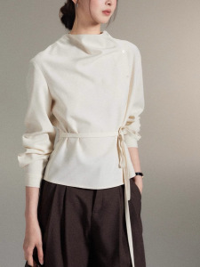 贰羊设计时宜简约不对称荡领斜门襟绑带收腰上衣女高级感衬衫