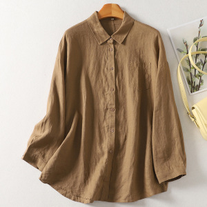 实拍现货秋季新款纯色通勤上衣女薄款慵懒风开衫宽松百搭棉麻衬衫