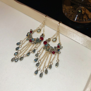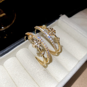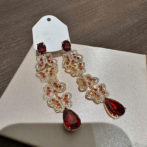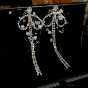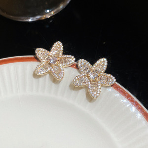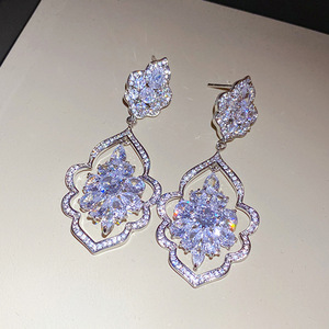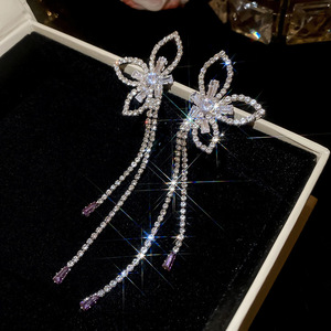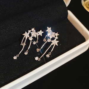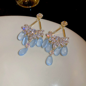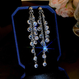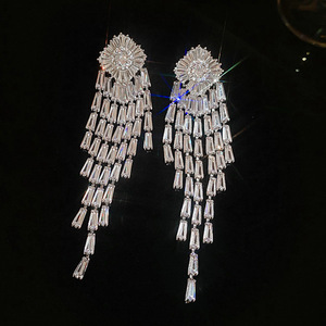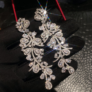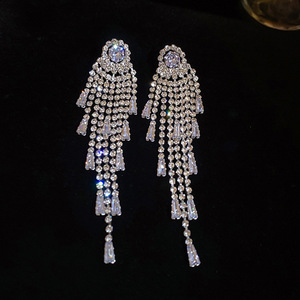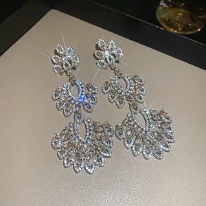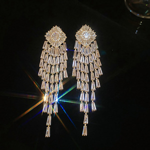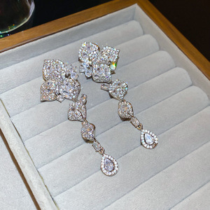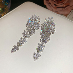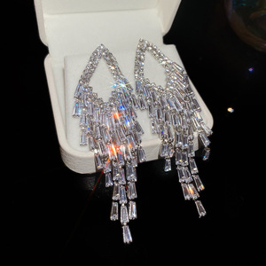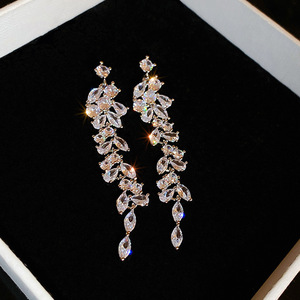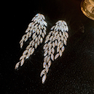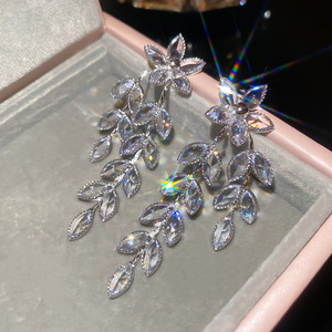 银针欧美超闪锆石树叶流苏耳环轻奢高级感耳钉气质耳饰设计感小众